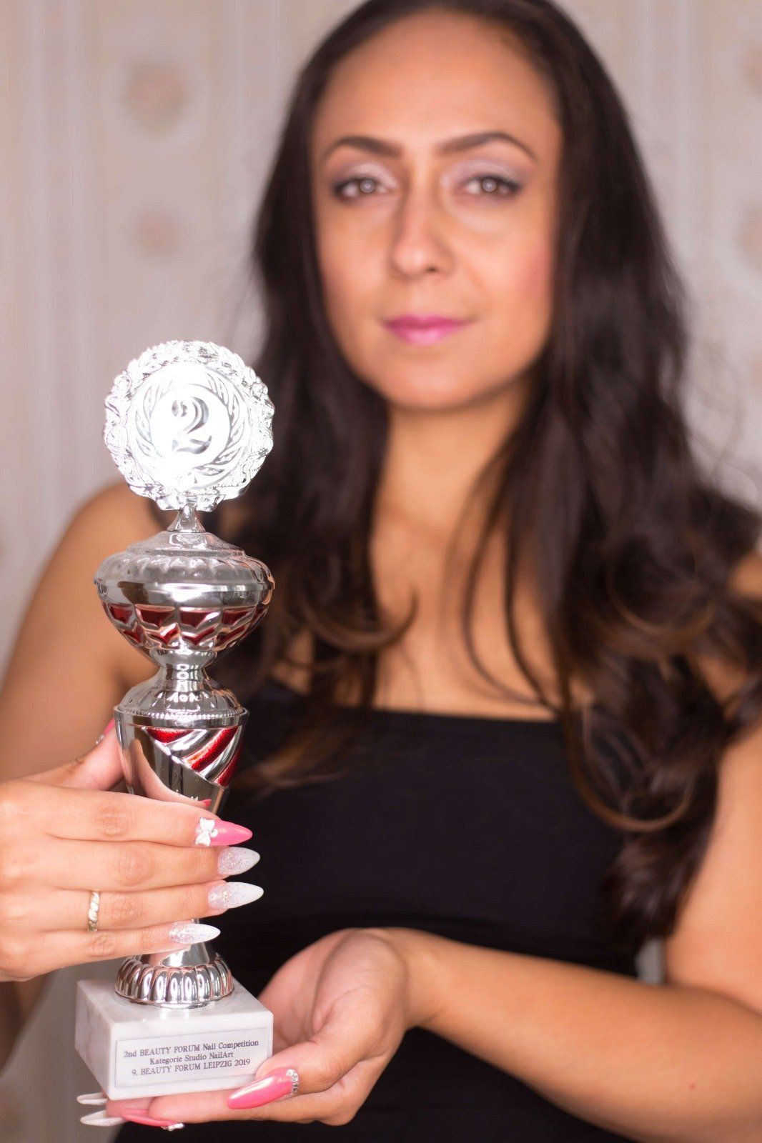 2019 habe ich bei der Beauty Messe Leipzig an der Naildesign Meisterschaft teilgenommen und in der Kategorie Studio-Natural-Nails den 2. Platz belegt.